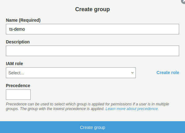 - Group name - e.g.: project-name-group1, this is the id and the tenant used in the configuration of the dynamoDB bellow.
